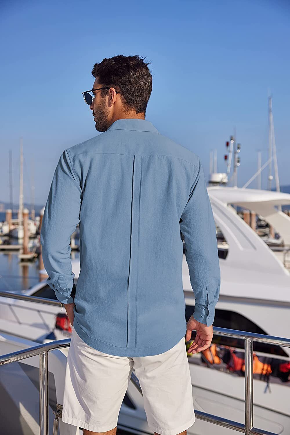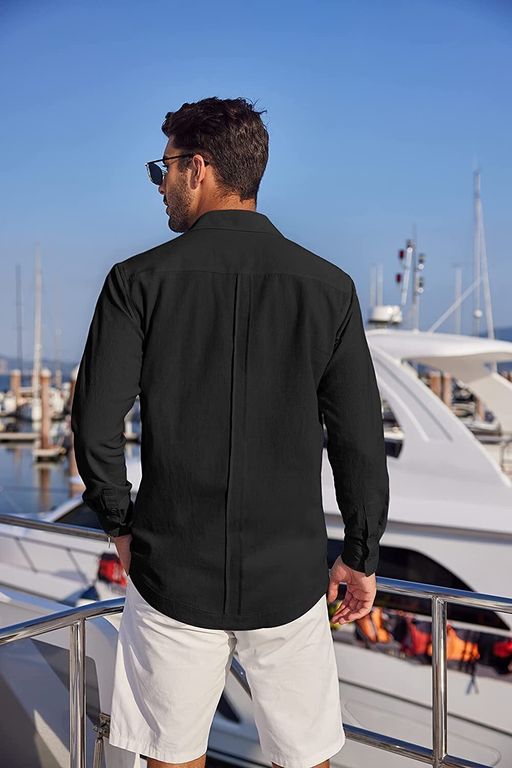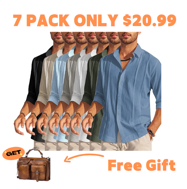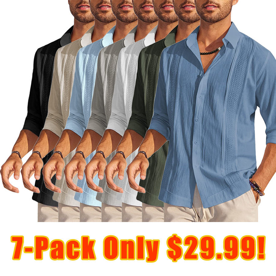 7-Pack Men's Cuban Shirts Long Sleeve Casual Button Down Shirt Cotton Beach Tops💖Buy two packs for free shipping💖