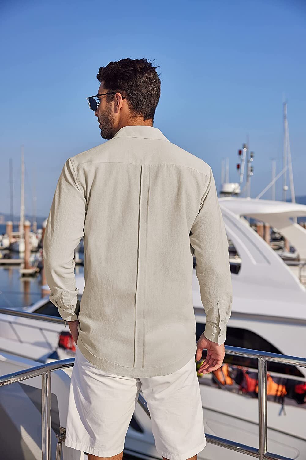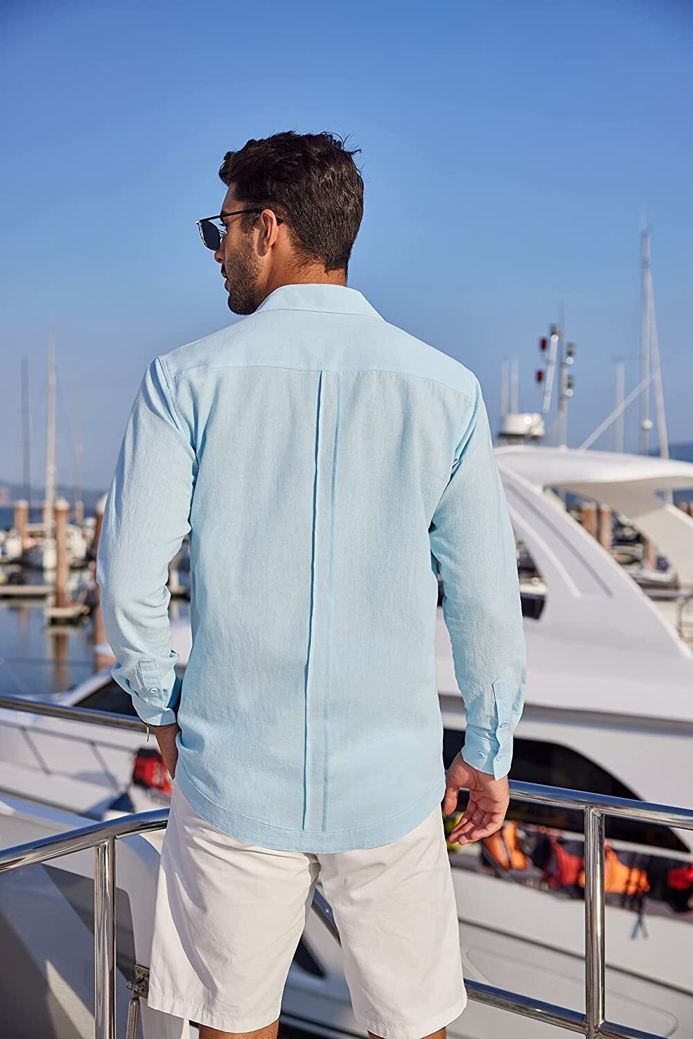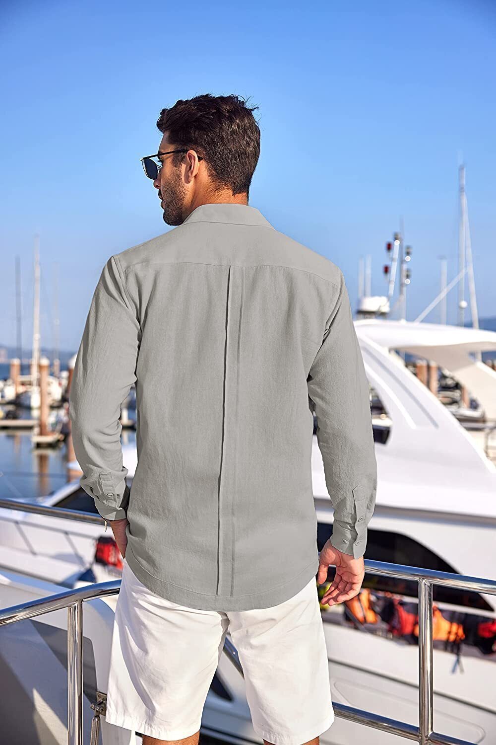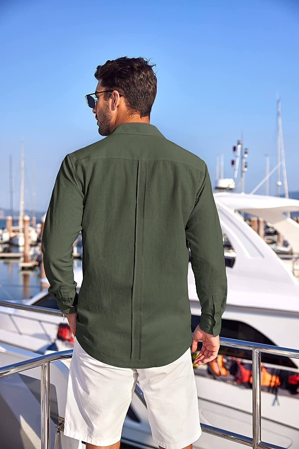 7-Pack Men's Cuban Shirts Long Sleeve Casual Button Down Shirt Cotton Beach Tops💖Buy two packs for free shipping💖