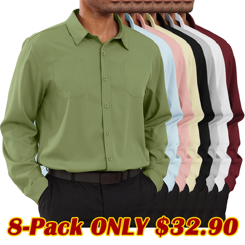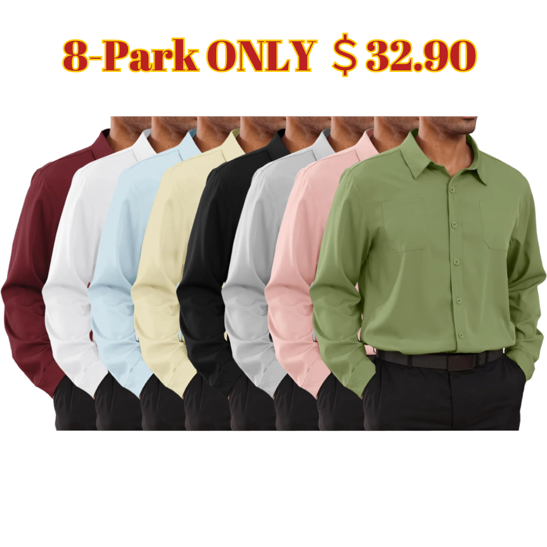 8-park Mens Fashion Dress Shirts Solid Color Long Sleeve Regular Fit Casual Button Down Shirts with Two Chest Pockets