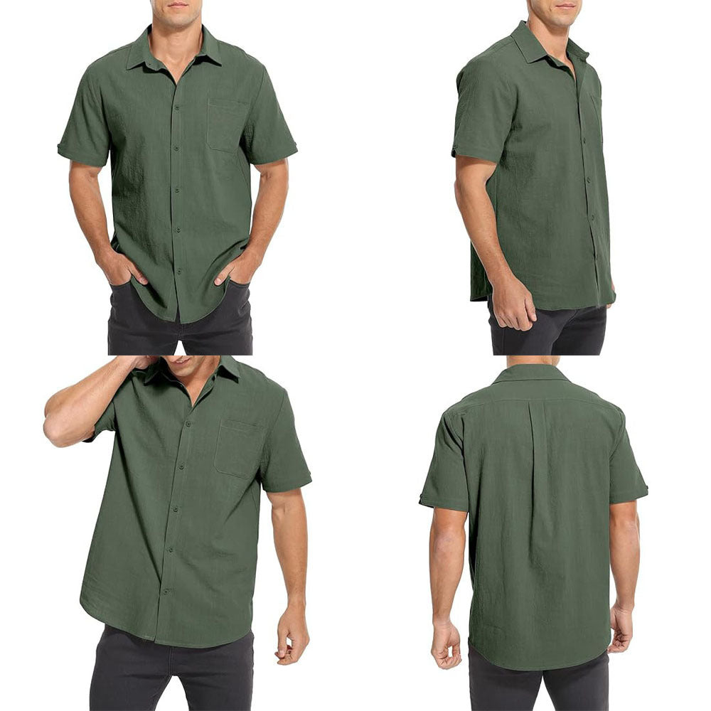 Mens casual button down linen shirts made of breathable cotton fabric, soft and skin friendly