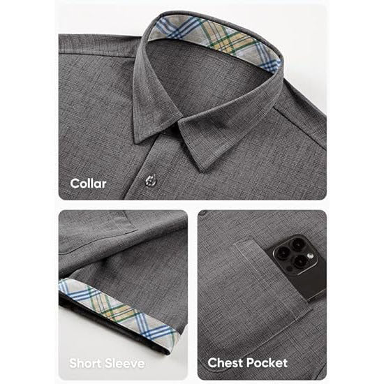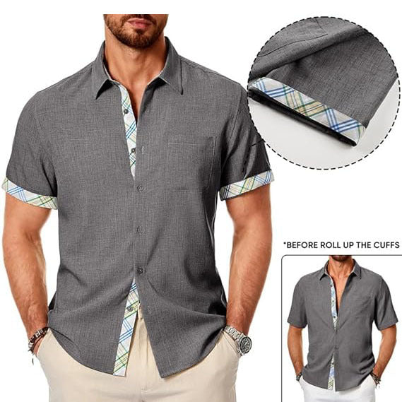- Features: Mens Cotton Linen Shirts feature plaid pattern, front pocket, button-down design, short sleeve, regular fit. Casual beach vacation style design to make you feel better about this summer.