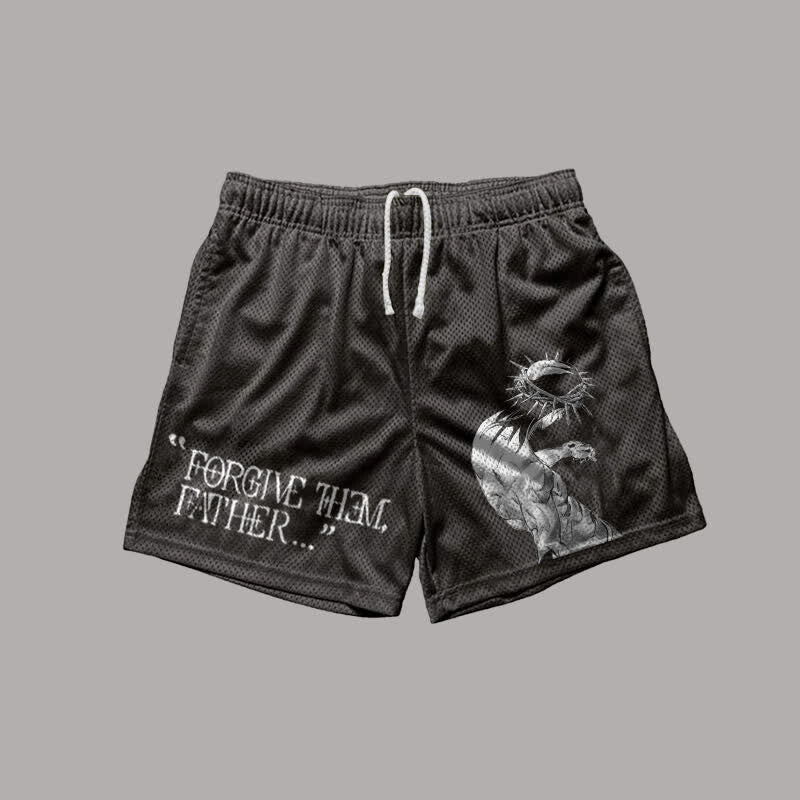 Forgive Them,Father Print Mesh Shorts