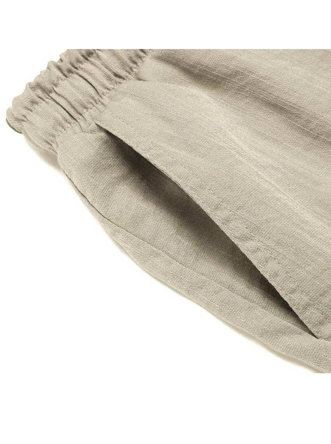 -Henley neck,Elastic waist,Slant pocket,Wrap hem