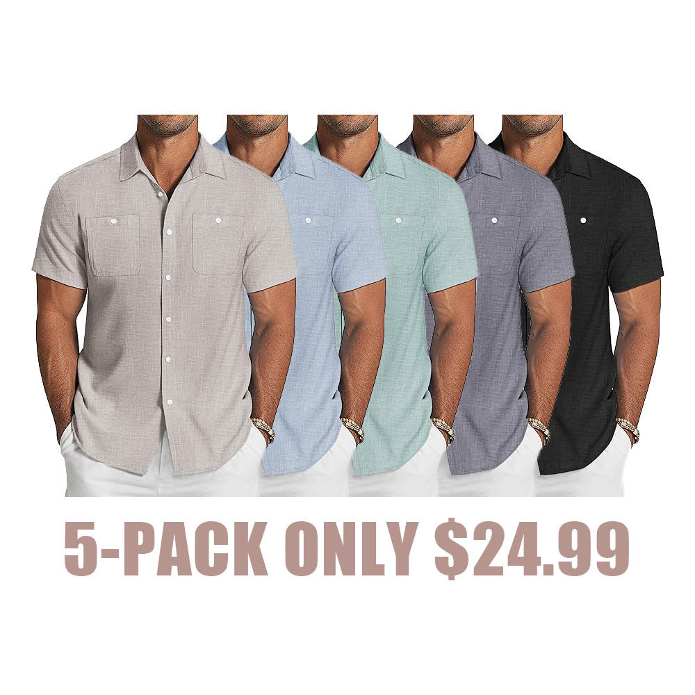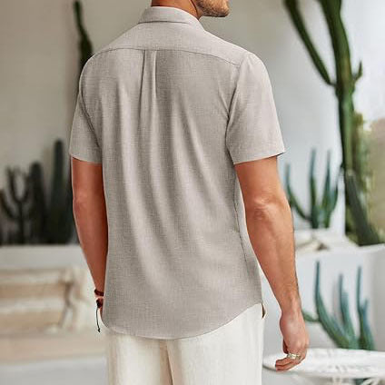 - CASUAL & FASHION --- Mens Casual Linen Shirts comes with button-down closure, short sleeve, adjustable cuff, silm fit, solid color. Casual Beach Style Design to make you feel better about this summer.