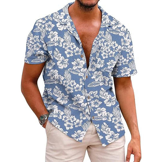 Linen Short Sleeve Floral Casual Shirts