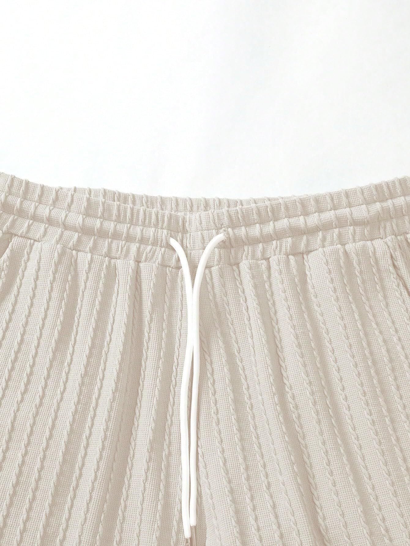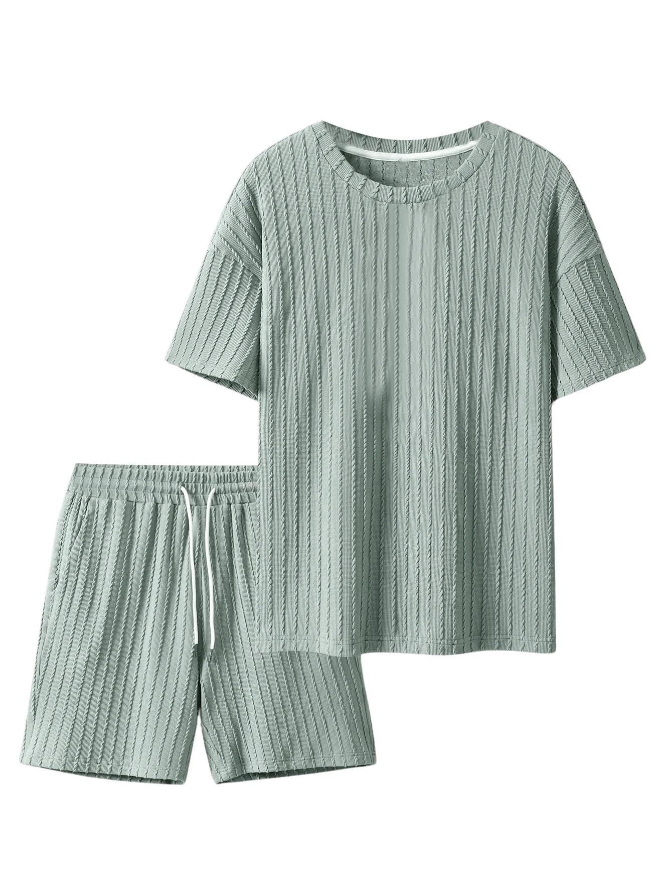 Men's Casual Textured Printed Short Sleeve Tee & Drawstring Waist Shorts Set