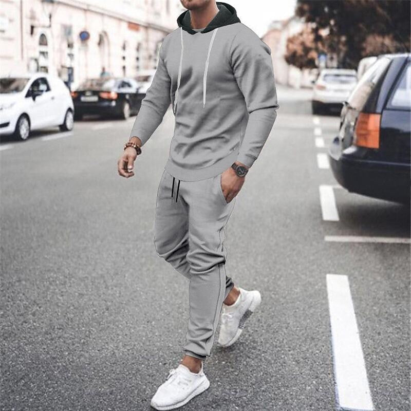 Men's Contrast Hoodied Trendy Pullover Tracksuit