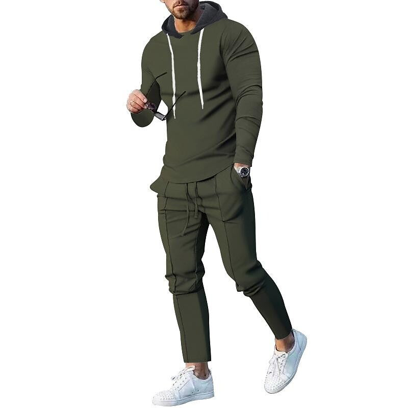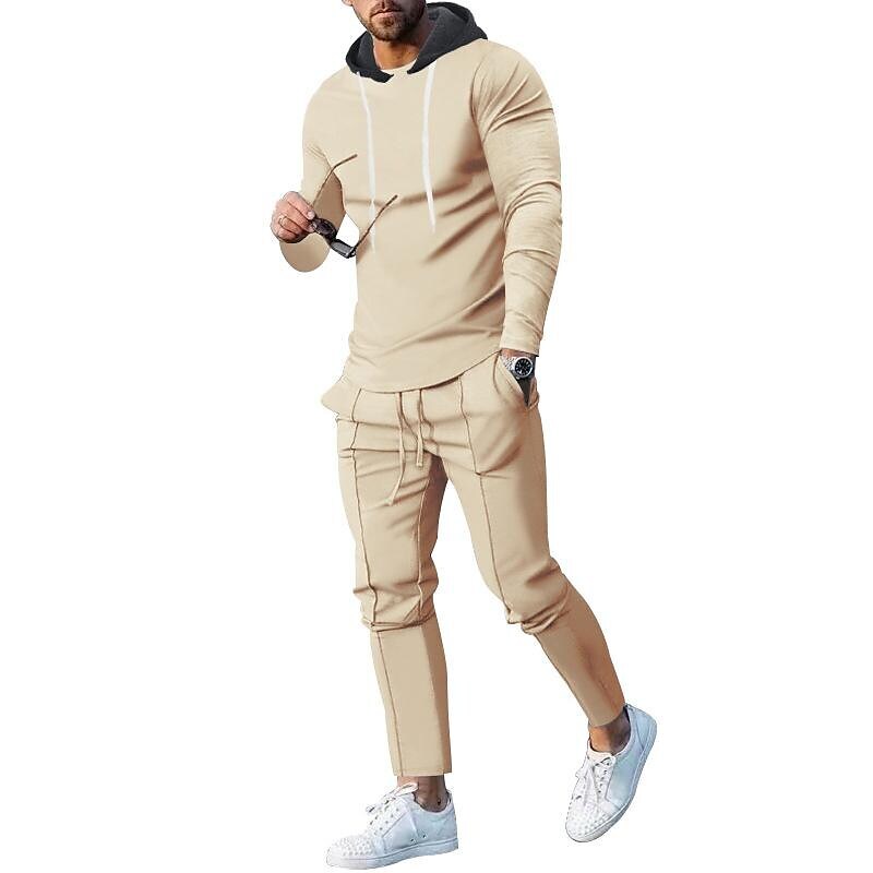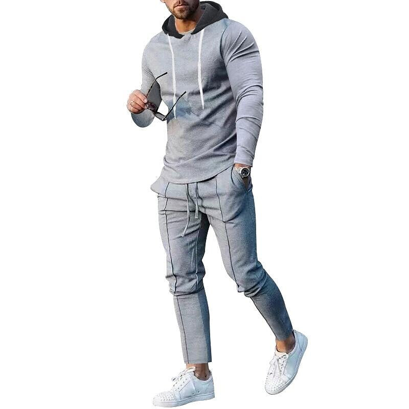 Men's Contrast Hoodied Trendy Pullover Two-piece Suits