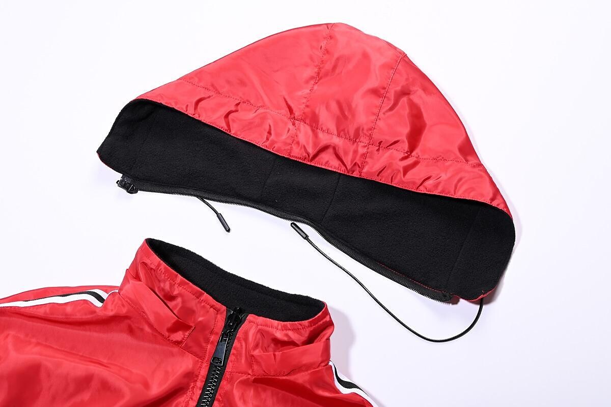 - Design Elements: Solid Color, Two zip-fastening Pockets, Detachable Hooded, Two-Piece, Drawstring Hem And Sleeve