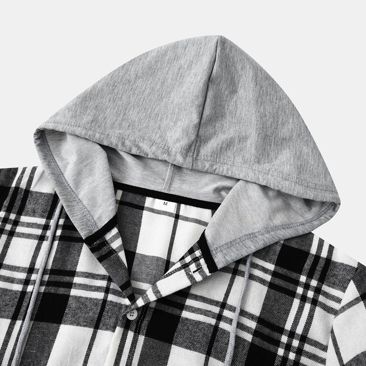 Men's Long Sleeve Flannel Brushed Check Hooded Casual Shirt