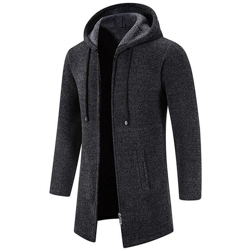 Men's Mid Length Fleece Padded Zipper Hooded Cardigan
