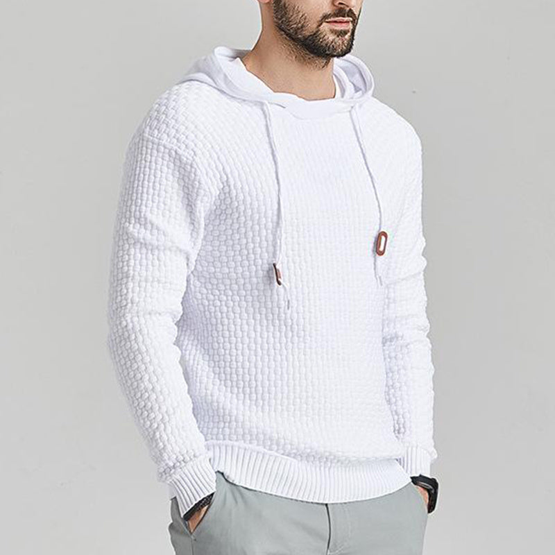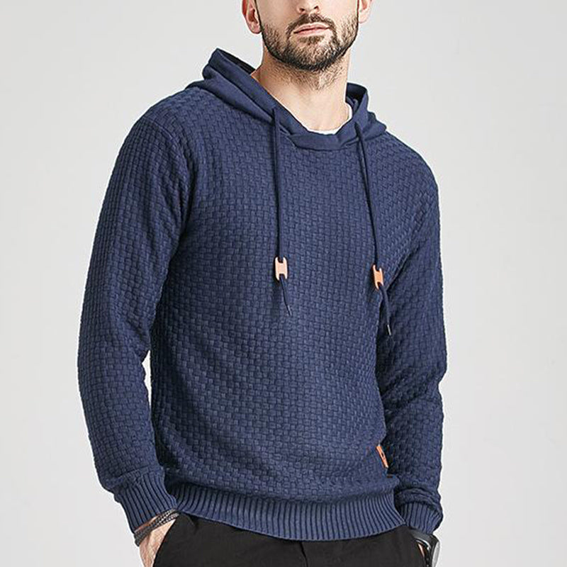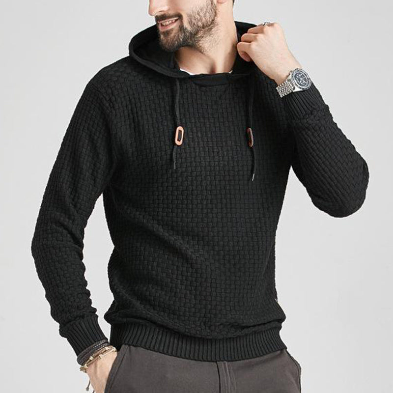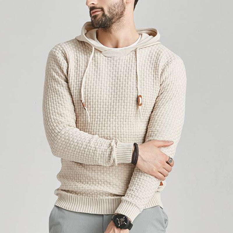 Men's Pullover Jacquard Check Pattern Hooded Sweater Basic Vintage Style