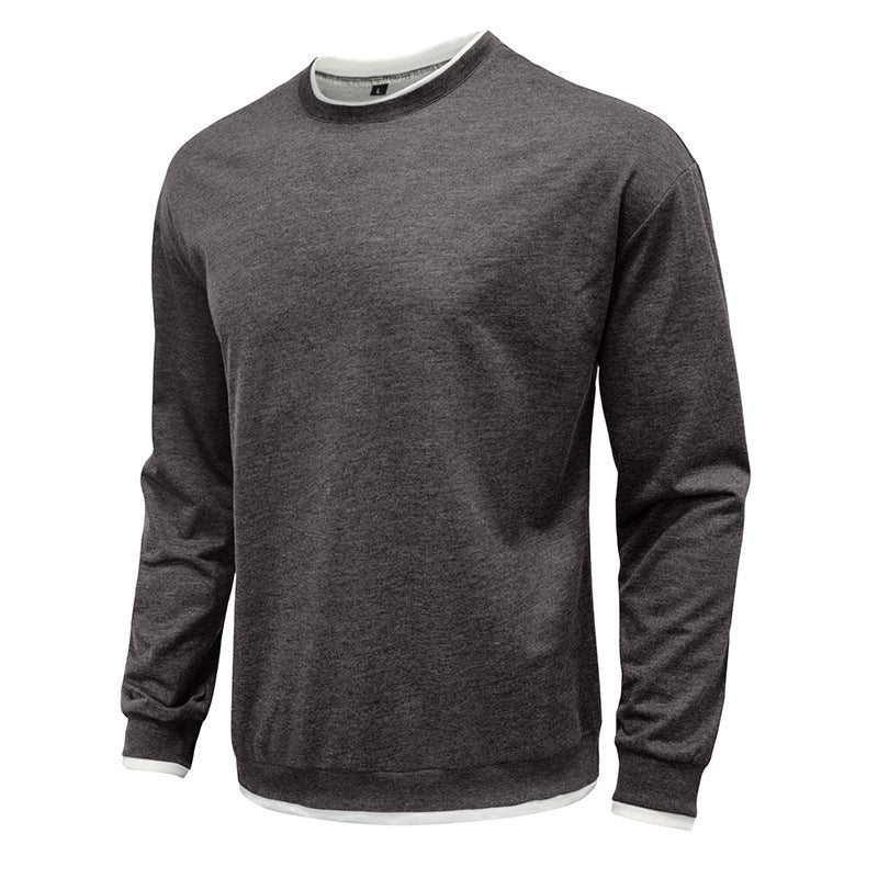 Men's Pullover Solid Color Patchwork Crew Neck Sweatshirts