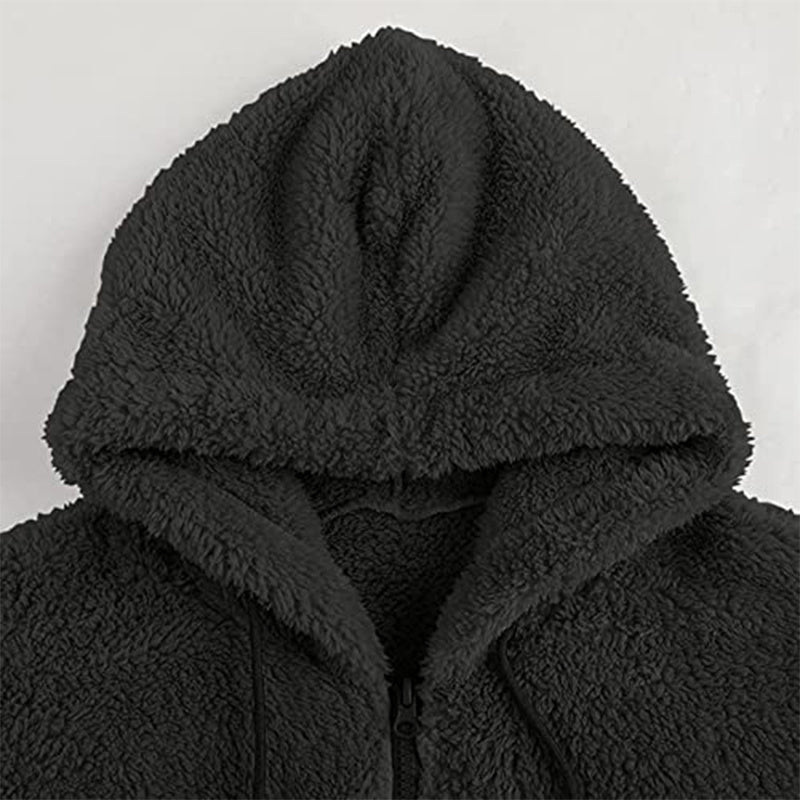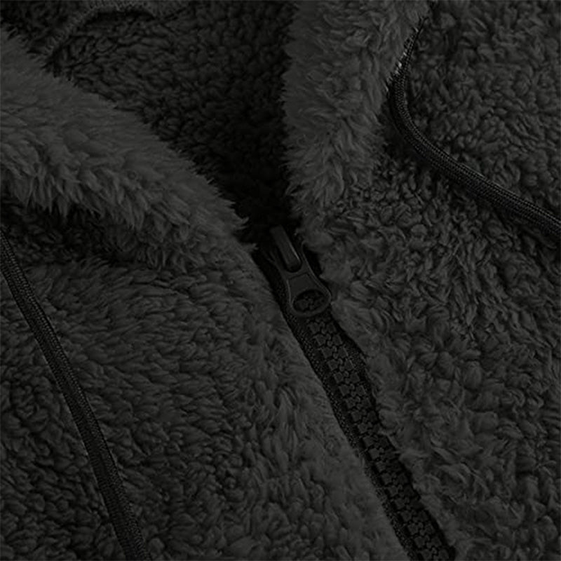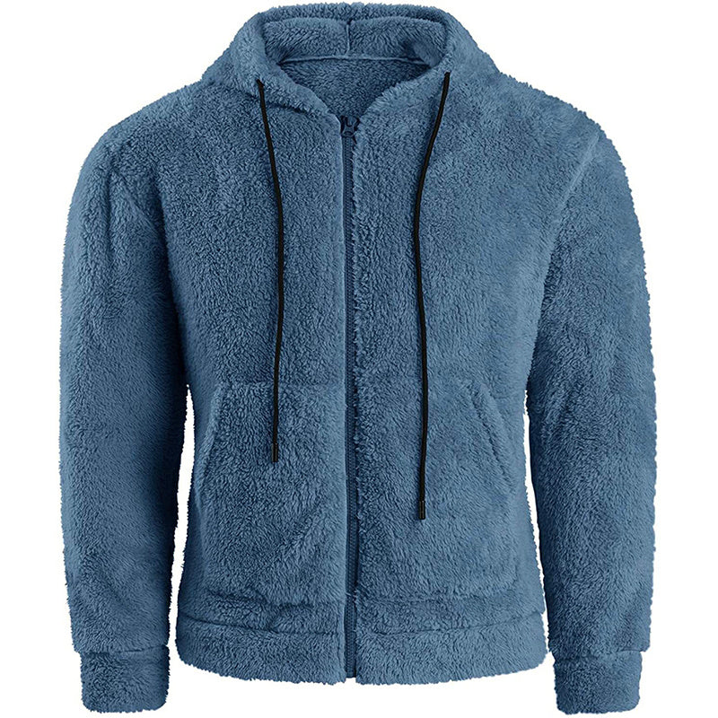 Men's Solid Color Fleece Zip-Up Drawstring Hoodie Sweatshirt