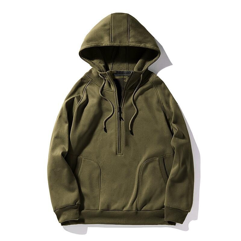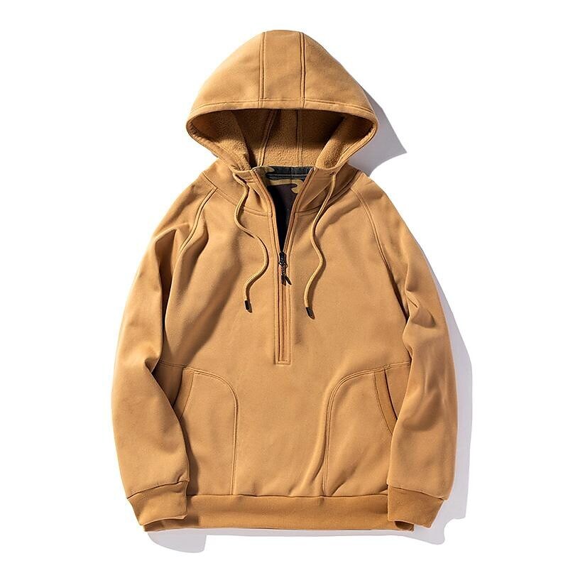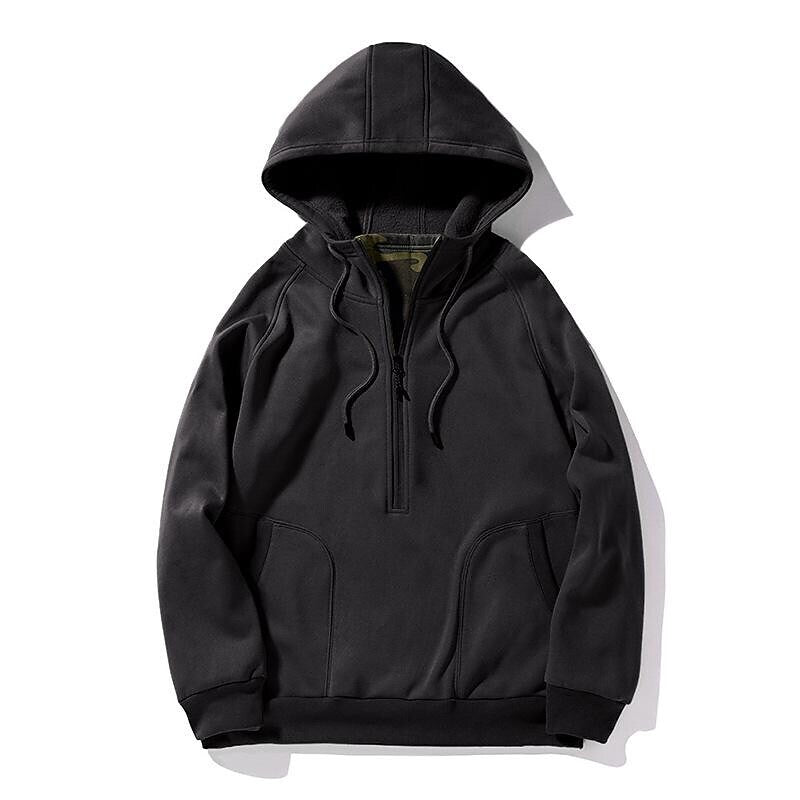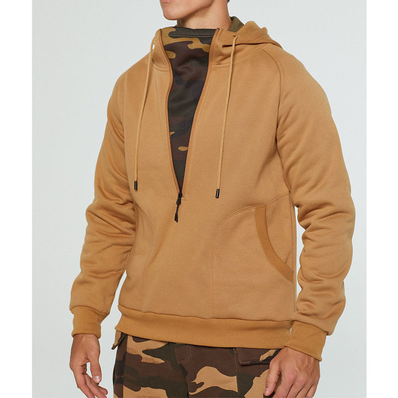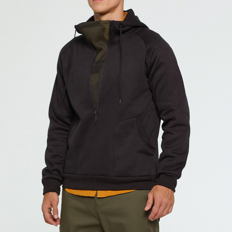 Men's Trendy Brushed V-Zip Camouflage Patchwork Pullover Hooded Sweatershirt