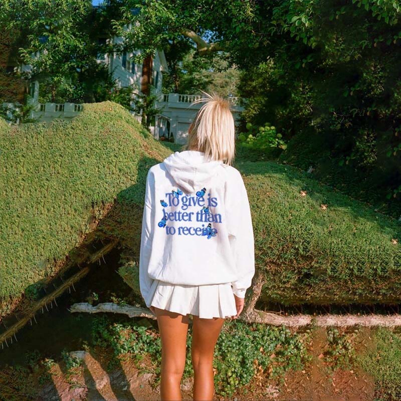 To Give Is Better Than To Receive Butterfly Print Hoodie